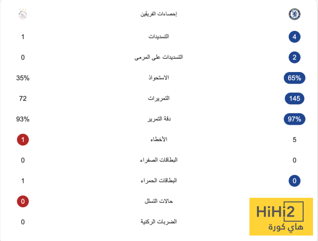 إحصائيات نصف ساعة من مباراة تشيلسي وأياكس