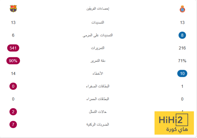 احصائيات مباراة برشلونة واسبانيول في الدوري الاسباني