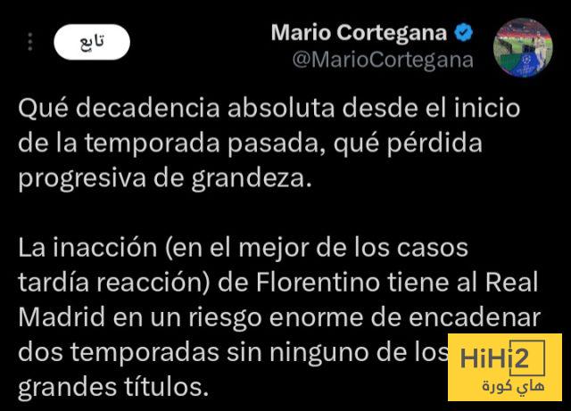 “إن تقاعس أو في أحسن الأحوال رد الفعل المتأخر لفلورنتينو بيريز يعرض ريال مدريد لخطر هائل يتمثل في قضاء موسمين دون أي من الألقاب الثلاثة الكبرى”.