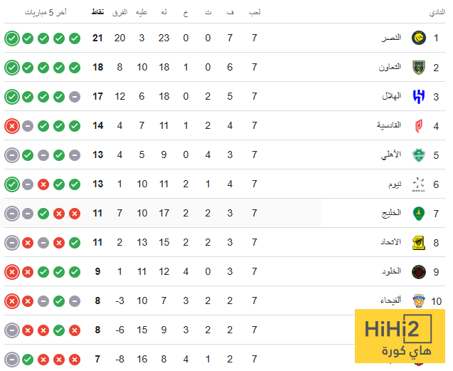 هاي كورة : نقدم إليكم ترتيب جدول بطولة الدوري السعودي للمحترفين، عقب مباراة النصر والفيحاء الذي انتهت بنتيجة (2-1) ،على ملعب الأول بارك.