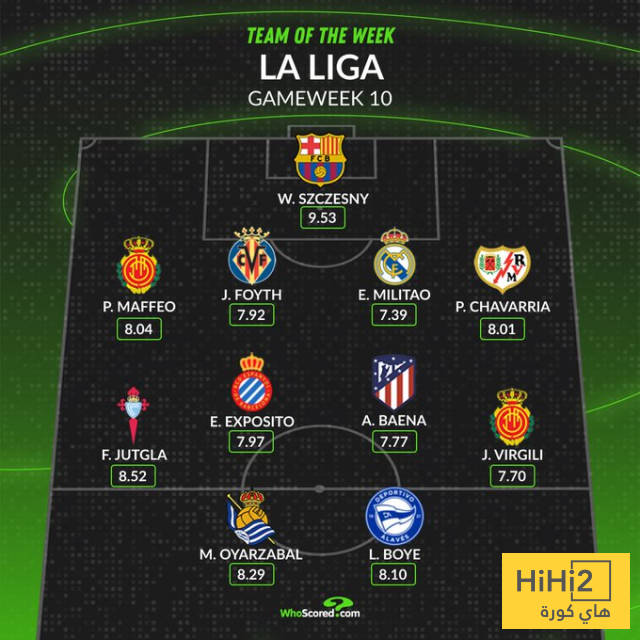 هاي كورة – نشر موقع WhoScored تشكيلة الأسبوع من الدوري الإسباني حسب تقييم اللاعبين بعد انتهاء الجولة العاشرة من مسابقة الليغا .