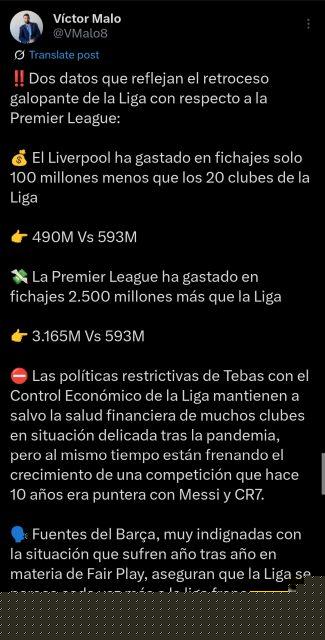 مصادر في برشلونة، أعربت عن غضبها الشديد من الوضع الذي يواجهونه عامًا بعد عام في ما يخص اللعب النظيف المالي (Fair Play)، مؤكدة أن الدوري الإسباني أصبح يشبه بشكل متزايد الدوري الفرنسي أو البرتغالي”.