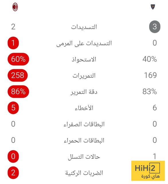 إحصائيات الشوط الأول لمباراة ميلان وليتشي في الدوري الإيطالي
