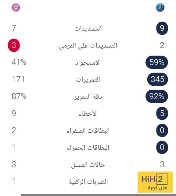 إحصائيات ساعة من مباراة باريس سان جيرمان وبايرن ميونخ