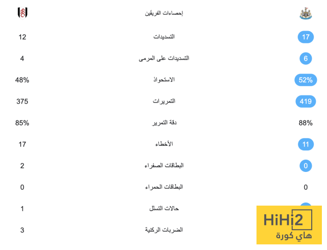 إحصائيات مباراة نيوكاسل يونايتد وفولهام