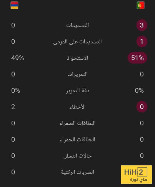 إحصائيات 15 دقيقة بين البرتغال و أرمينيا