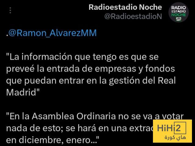 “المعلومات المتوفرة لدي تشير إلى أنه من المتوقع دخول شركات وصناديق قد تتدخل في إدارة ريال مدريد”.
