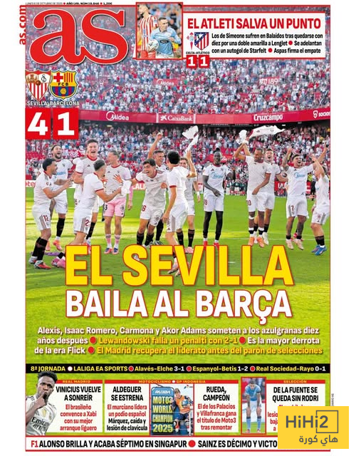هاي كورة: تصدر السقوط المدوي لبرشلونة على يد إشبيلية غلاف صحيفة آس اليوم.