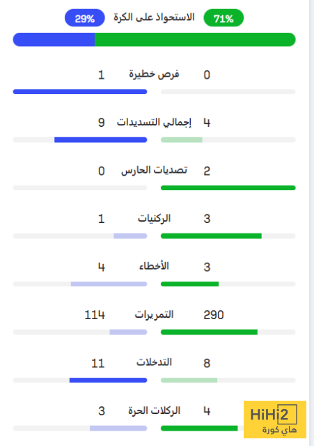 إليكم احصائيات الشوط الأول: