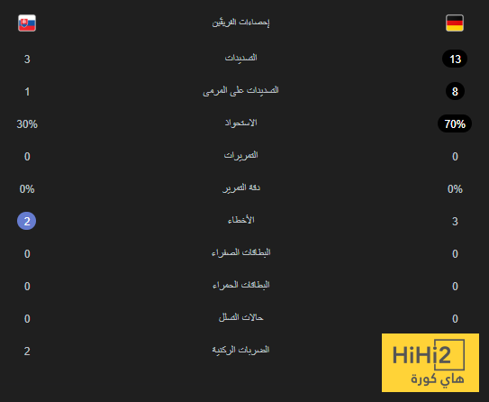 احصائيات الشوط الاول من مباراة المانيا ضد سلوفاكيا
