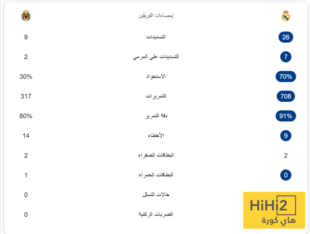 احصائيات مباراة ريال مدريد وفياريال في الليغا