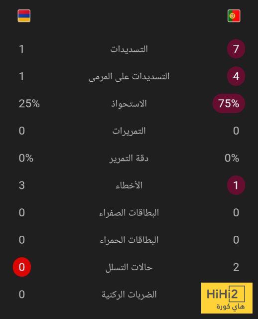 إليكم احصائيات نصف ساعة بين البرتغال و أرمينيا حتى الآن: