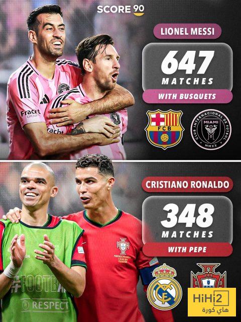 1- الاسباني سيرجيو بوسكيتس اقرب زميل للأرجنتيني ليونيل ميسي حيث لعب معا 646 مباراة في برشلونة و انتر ميامي و ابرز انجازاتهما الثلاثية الاولى و الثانية .