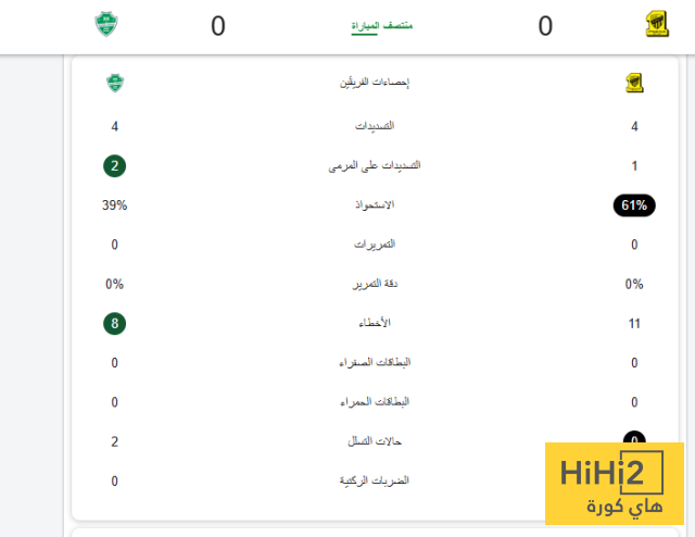 هاي كورة : تفوق الاتحاد على الأهلي في إحصائيات الشوط الأول، التي انتهت بالتعادل السلبي بدون تسجيل أهداف، في الجولة الثامنة من دوري روشن السعودي للمحترفين، على ملعب “الإنماء”.