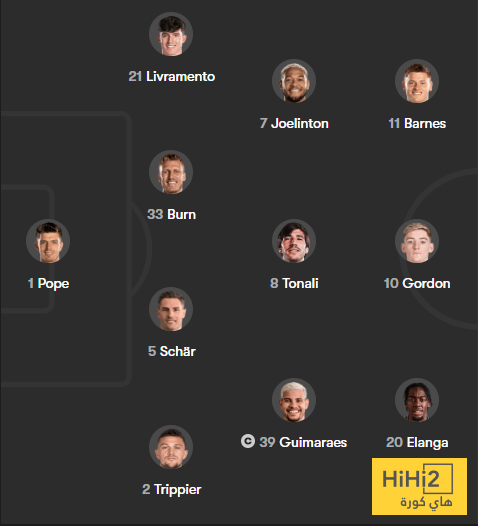 الرسم التكتيكي لتشكيلة نيوكاسل ضد ليفربول: