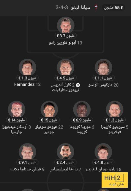 القيمة السوقية لـ تشكيلة سيلتا فيغو أمام برشلونة اليوم في الدوري الاسباني بلغت ٦٥ مليون يورو موزعة على اللاعبين كالتالي: