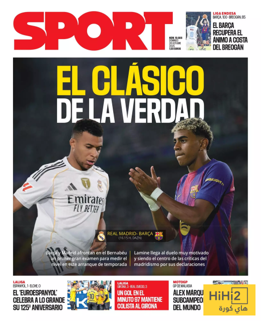 هاي كورة- الكلاسيكو هو العنوان الابرز على صحيفة سبورت الكتالونية اليوم الاحد 26 اكتوبر 2025.