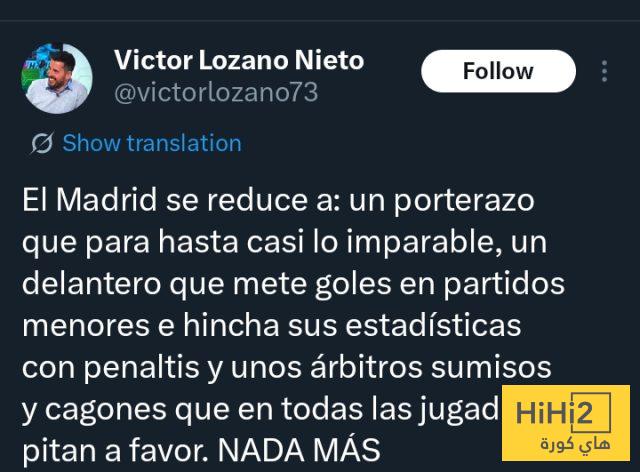 كتب لوزانو عبر حسابه الشخصي على منصة X : ” ريال مدريد يختصر في الآتي : حارس مرمى خارق يصد جميت الكرات حتى شبه المستحيلة ، مهاجم يحرز أهداف في المباريات الصغيرة ويزيد أرقامه بركلات الجزاء ، حكام خاضعون خائفون يصفرون لصالحه في كل لقطة ، ولا شيء أكثر من ذلك “.