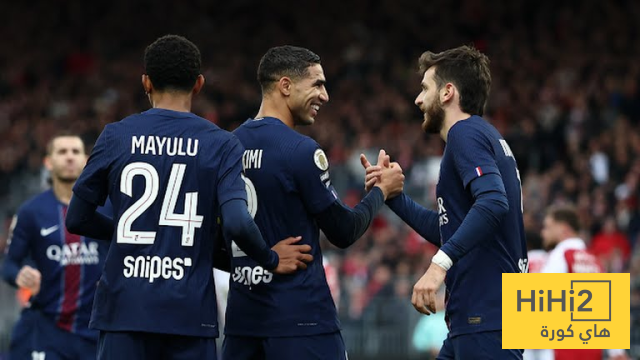 سجل اشرف حكيمي هدفي باريس في شباك بريست مع الدقيقة 39،29.