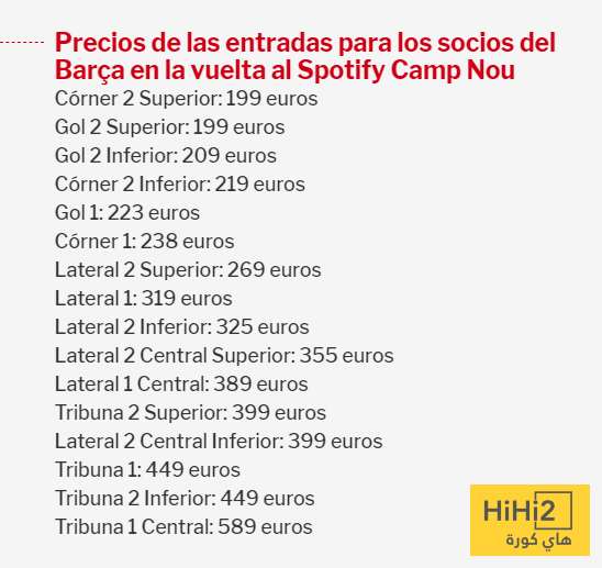 هاي كورة – من المقرر أن يعيد ملعب كامب نو التابع لخدمة Spotify فتح أبوابه لمباراة برشلونة وأتلتيك بلباو يوم السبت المقبل 22 نوفمبر، ولكن الأعضاء الذين لا يملكون تذكرة موسمية والذين يريدون مشاهدة المباراة سيتعين عليهم إنفاق مبالغ كبيرة من المال ، وفقًا لصحيفة موندو ديبورتيفو الكتالونية .