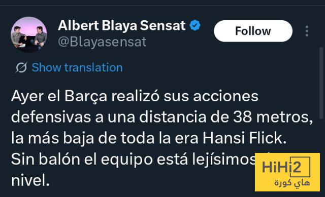 ” نفذ برشلونة بالأمس تحركاته الدفاعية على مسافة 38 متر من مرماه ، وهو الحد الأدنى في عهد المدرب هانز فليك بدون كرة ، الفريق أصبح بعيد للغاية عن مستواه المعهود “.