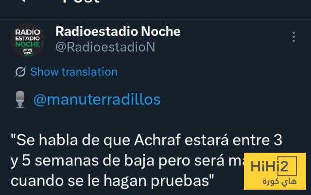 قال مانويل : ” أشرف حكيمي سيغيب ما بين 3 إلى 5 اسابيع ، لكن الفحوصات ستجرى له غدًا لتحديد ذلك “.