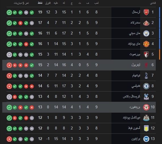 بهذه الهزيمة يتجمد رصيد ليفربول عند النقطة 15 في المركز السادس من ترتيب البريميرليغ، فيما حين صعد برينتفورد الى المركز الـ 10 بعدما ارتفع رصيده الى 13 نقطة.