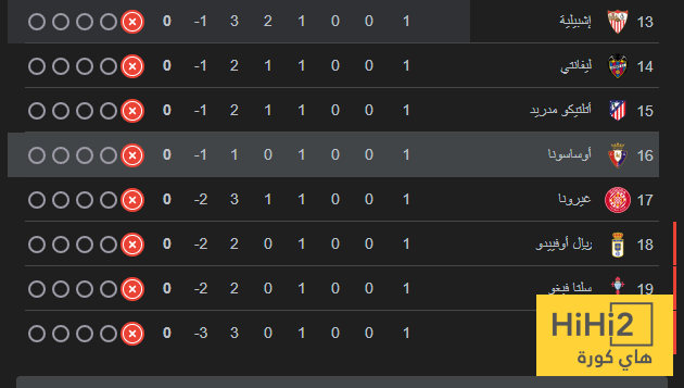 ترتيب الليغا بعد انتهاء الجولة الأولى :