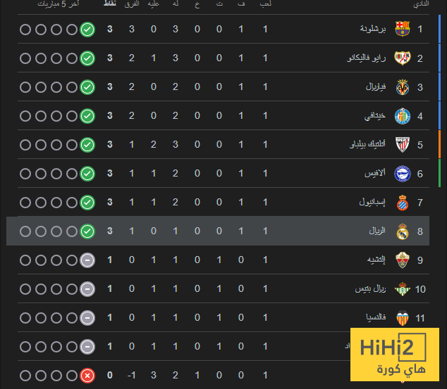 ترتيب الليغا بعد انتهاء الجولة الاولي