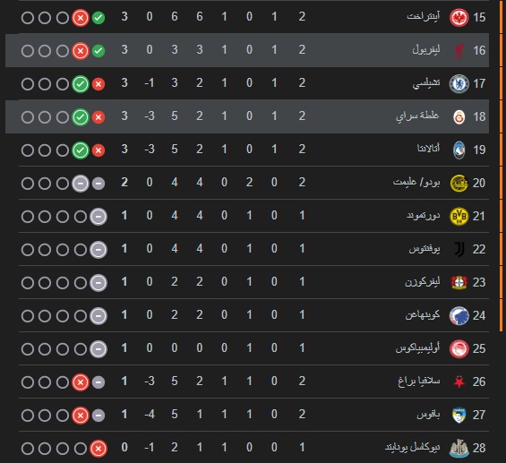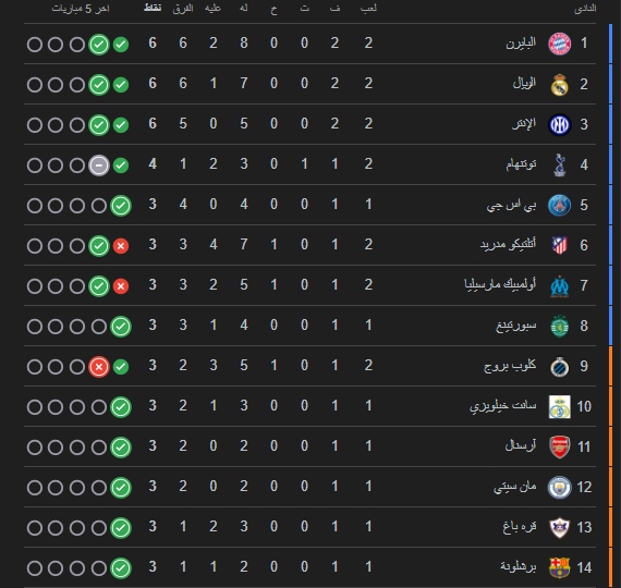 ترتيب دوري ابطال اوروبا بعد انتهاء مباريات اليوم الثلاثاء