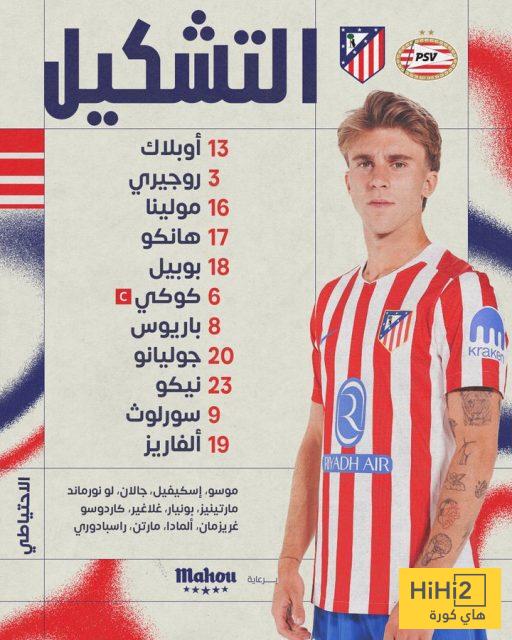 تشكيلة أتلتيكو مدريد الرسمية ضد أيندهوفن في دوري أبطال أوروبا
