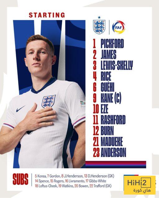 تشكيلة إنجلترا الرسمية ضد أندورا في تصفيات كأس العالم 2026