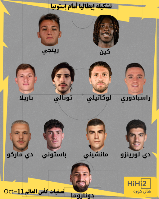 تشكيلة إيطاليا المتوقعة ضد إستونيا في تصفيات كأس العالم 2026