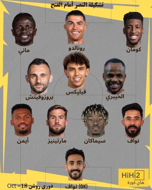 هاي كورة – كشف موقع هاي كورة عن تشكيلة النصر المتوقعة لمواجهة الفتح في الجولة الخامسة من دوري روشن السعودي للمحترفين حيث سيلتقي الفريقان مساء اليوم السبت وفق التوقيت المدرج في جداول الموقع لكل دولة حول العالم.