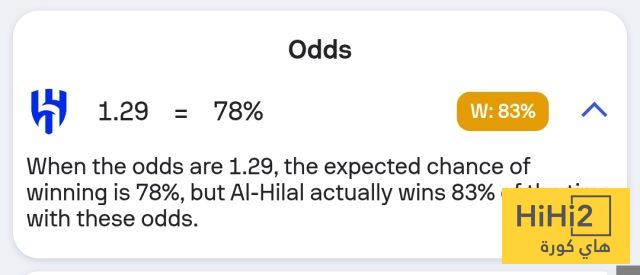 نسبة فوز الهلال تصل إلى 83% ، بينما توزعت الـ 17% المتبقية ما بين الهزيمة والتعادل .