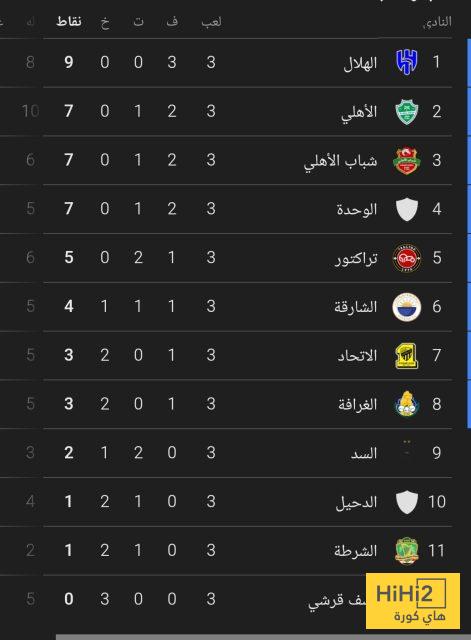 الهلال بالعلامة الكاملة ( 9 نقاط ) ، سجل 8 أهداف واستقبلت شباكه 4 أخرين .