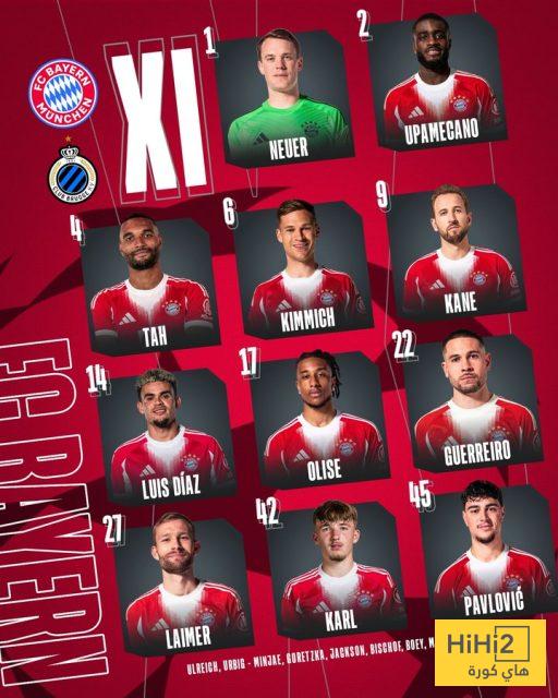 تشكيلة بايرن ميونخ الرسمية ضد كلوب بروج