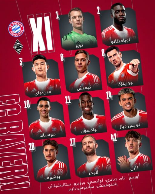 تشكيلة بايرن ميونخ ضد بروسيا مونشنغلادباخ في الدوري الألماني