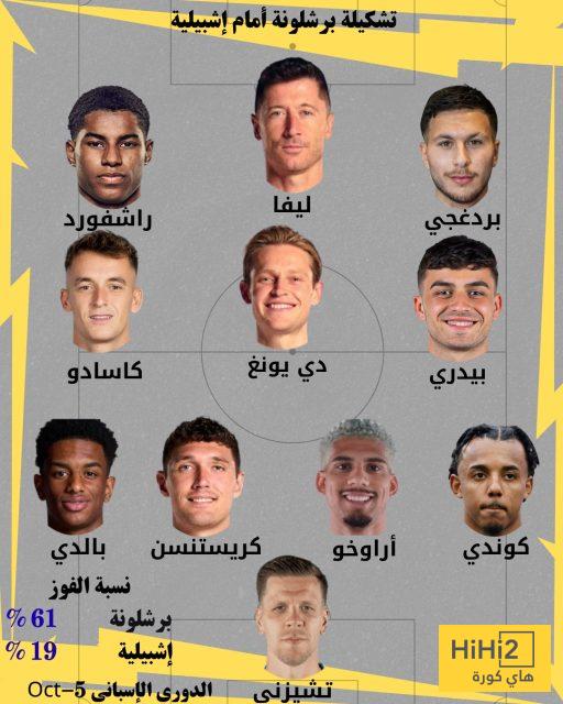 هاي كورة – كشف موقع هاي كورة عن تشكيلة برشلونة المتوقعة لمواجهة إشبيلية في الجولة الثامنة من الليغا حيث سيلتقي الفريقان اليوم الأحد وفق التوقيت المدرج في جداول الموقع لكل دولة حول العالم.