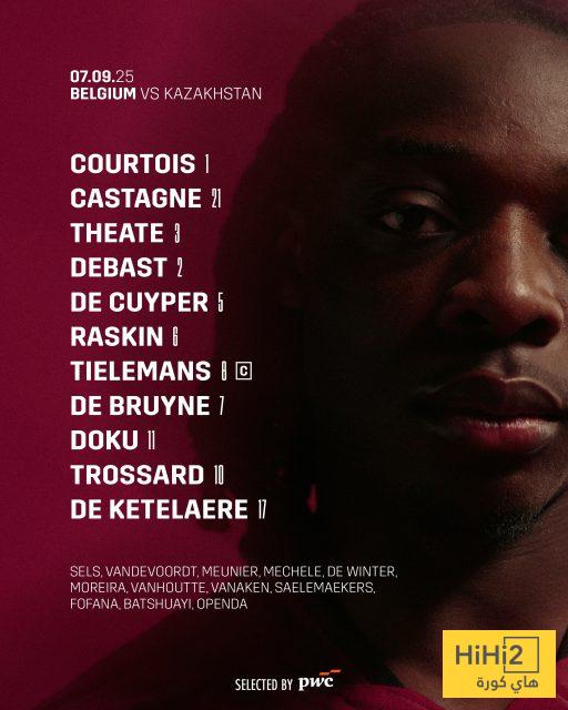 تشكيلة بلجيكا الرسمية ضد كازاخستان في تصفيات كأس العالم 2026