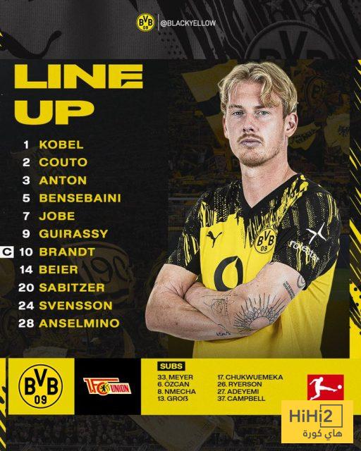 تشكيلة بوروسيا دورتموند الرسمية ضد يونيون برلين في الدوري الألماني