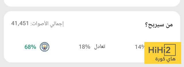 نسبة الفوز: مانشستر سيتي 68% مقابل 14% لبرايتون، أما التعادل 18%.