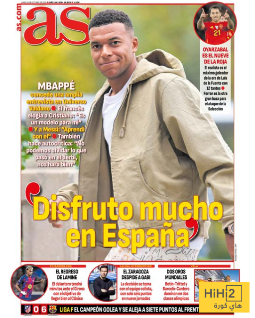هاي كورة- تصدرت تصريحات النجم الفرنسي كيليان مبابي غلاف صحيفة أس الاسبانية اليوم الاثنين 13 اكتوبر 2025.
