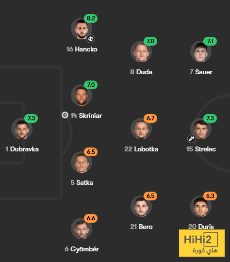تقييم لاعبو سلوفاكا في الشوط الاول: