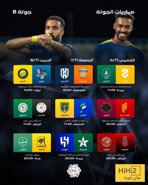هاي كورة – تتجه أنظار الجماهير نحو الملاعب السعودية لمتابعة مباريات الجولة الثامنة من دوري روشن السعودي للمحترفين ، والتي تنطلق مساء الخميس بمواجهة قوية بين الحزم والخليج .
