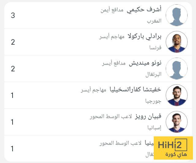 هاي كورة : يتصدر النجم المغربي ، أشرف حكيمي ، قائمة الأكثر صناعة للأهداف مع باريس سان جيرمان في دوري أبطال أوروبا هذا الموسم .
