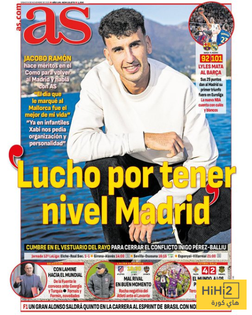 هاي كورة- تصدر جاكوبو رامون ، لاعب الريال السابق ونجم كومو حاليا ، غلاف صحيفة أس الاسبانية اليوم 8 نوفمبر 2025 .