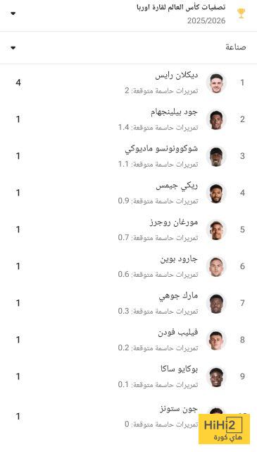 هاي كورة – يتصدر ديكلان رايس قائمة أكثر لاعبي منتخب إنجلترا صناعة للأهداف في تصفيات بطولة كأس العالم 2026 ، حيث قدم 4 تمريرات حاسمة حتى الآن .