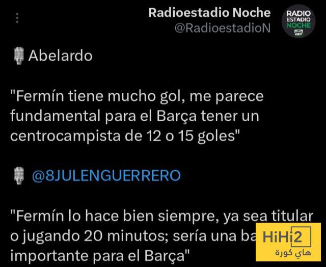 أبيلاردو: “فيرمين لديه الكثير من الأهداف، أعتقد أنه من الضروري بالنسبة إلى برشلونة أن يكون لديه لاعب وسط قادر على تسجيل 12 أو 15 هدفًا في الموسم”.
