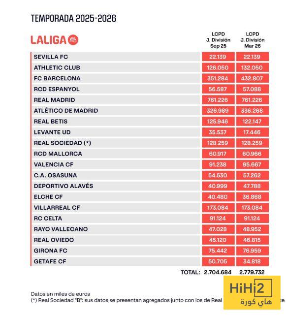 هاي كورة – أعلنت رابطة الليغا الاسبانية رسمياً منذ قليل عن سقف الرواتب الجديد للأندية في دوري الدرجة الأولى قبل نهاية الموسم.